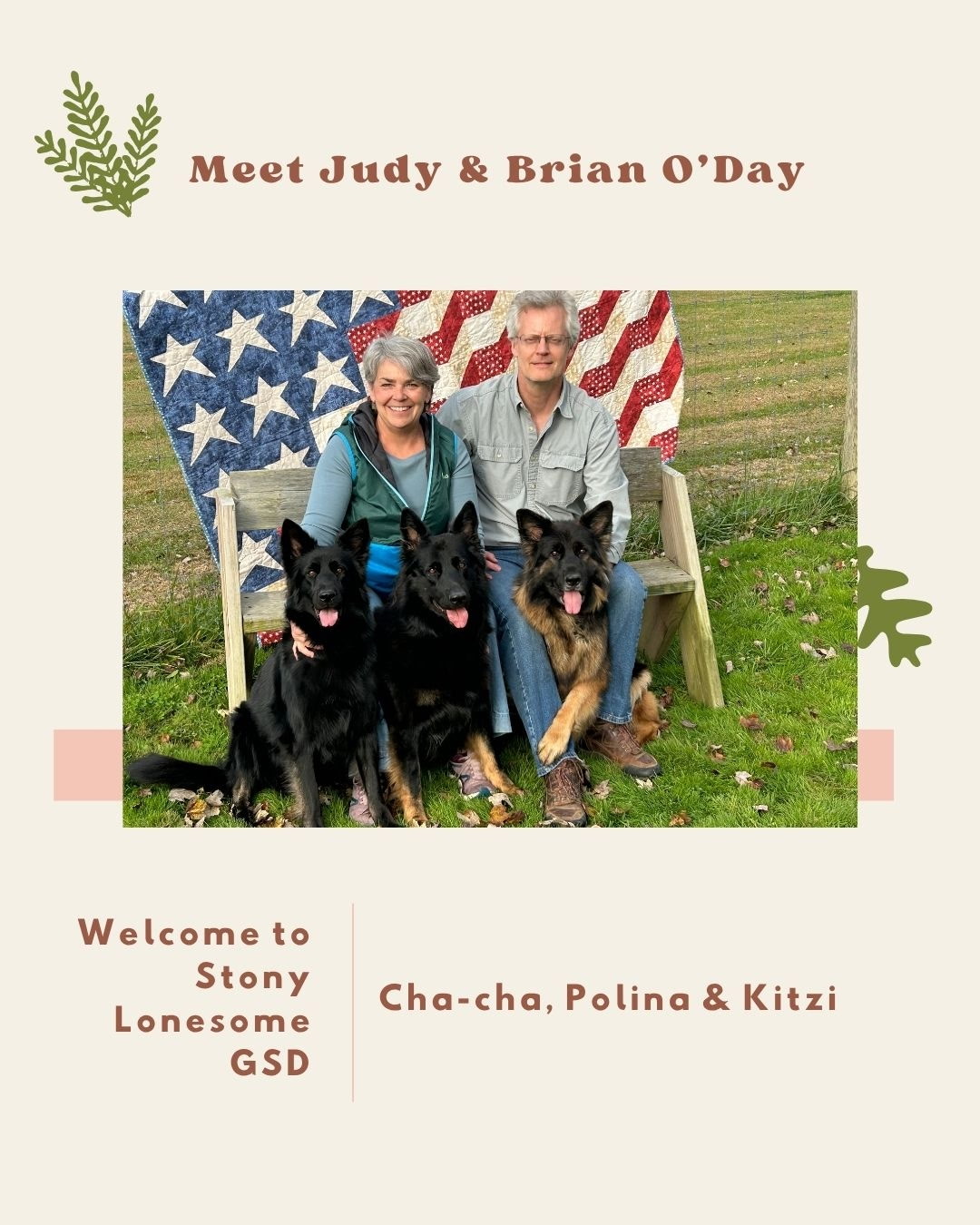"Judy is the best. The parents and puppies are well cared for, beautiful and smart. Love my pup - has the best personality along with good looks. I’m also now part of the Stony Lonesome GSD community where owners can share info on their pups, learn about other pups and pick up training tips."
