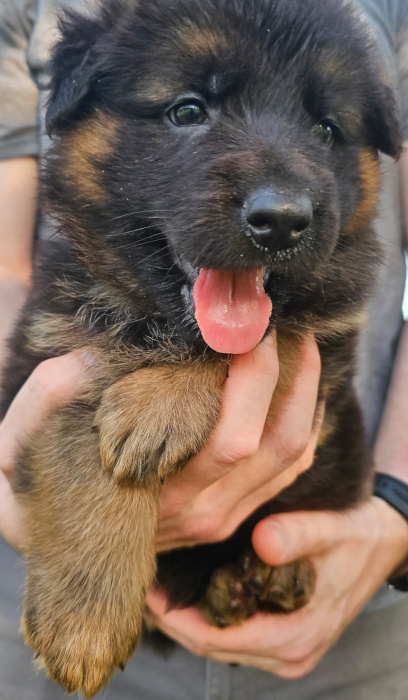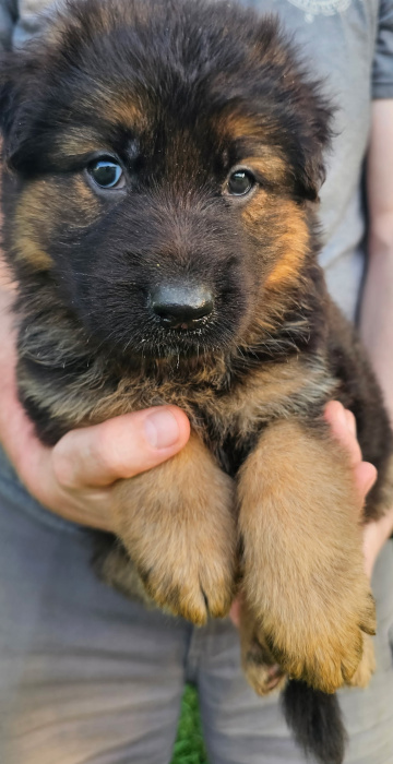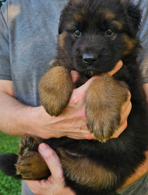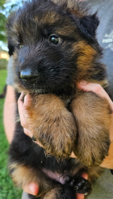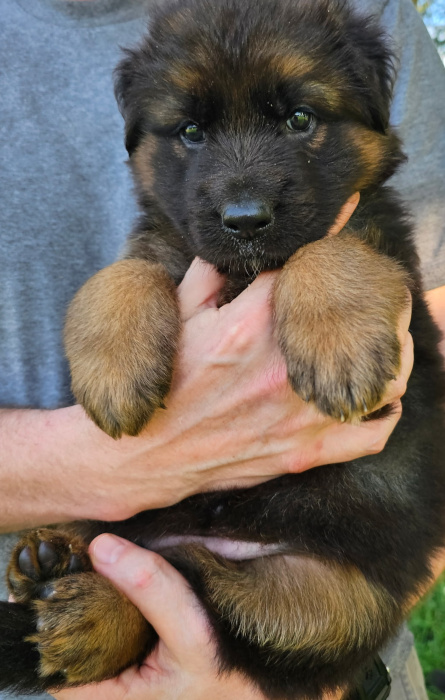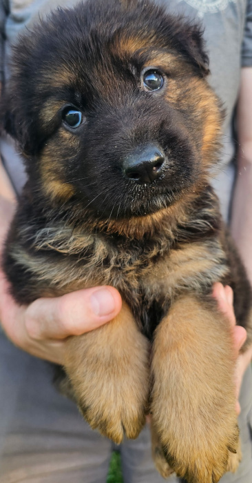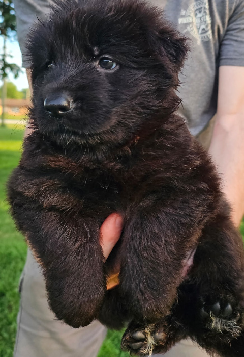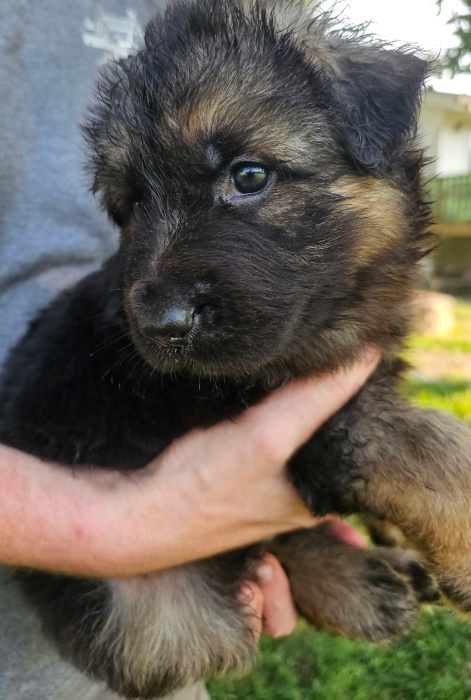 This pairing produces beautiful and versatile longcoat German Shepherds. SL GSD has only a couple of litters yearly and intensively enriches and cares for each puppy giving him or her the best start toward a lifetime of playfulness, curiousity, and confidence with people and other dogs – a dog that responds well to tricky situations and to life in general. Our goal is the best dog you’ve ever had, a superbly loving, intelligent, composed, and capable lifetime companion for any good GSD family.