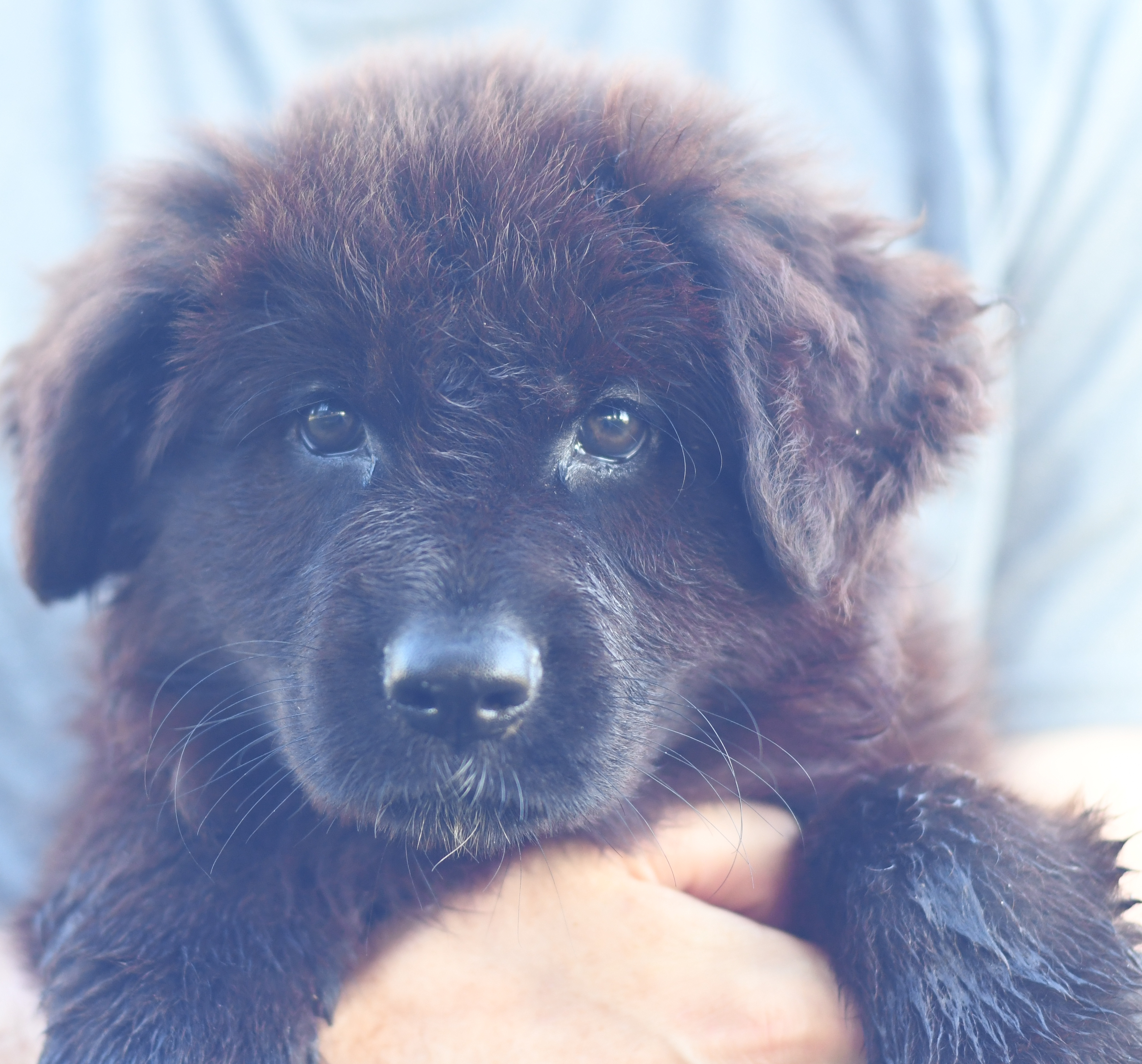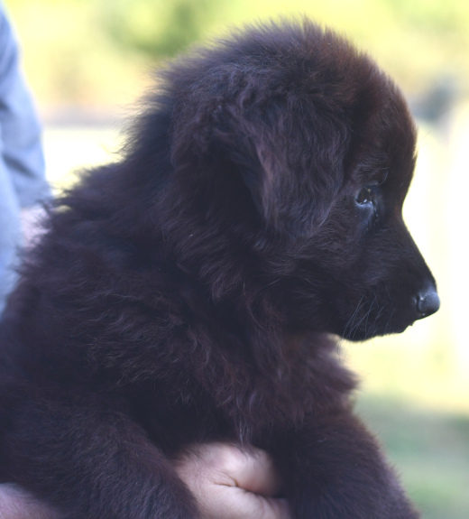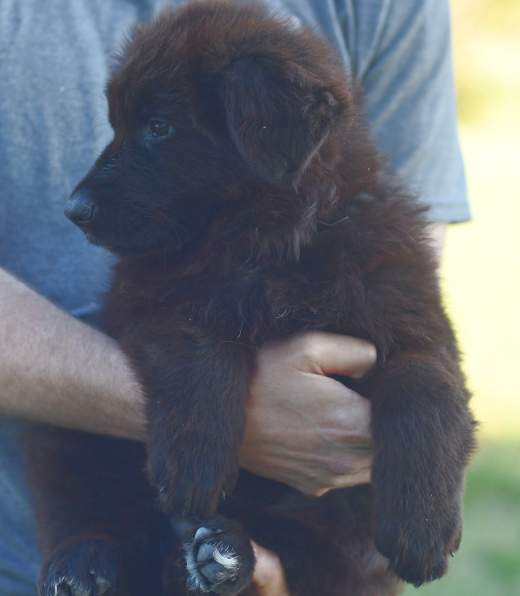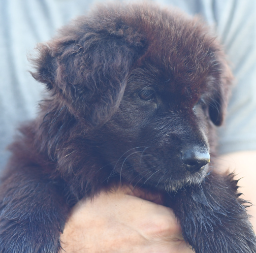 Sunshine is a beautiful black and red longcoat female with lovely color. She is a watcher and loves people. Sunshine has a contemplative personality and thinks things over, but once she decides she wades in with confidence. She is content playing with her littermates, being cuddled and loved by people or simply just sitting and watching. She is a big bundle of cuddles and will make an excellent family companion.