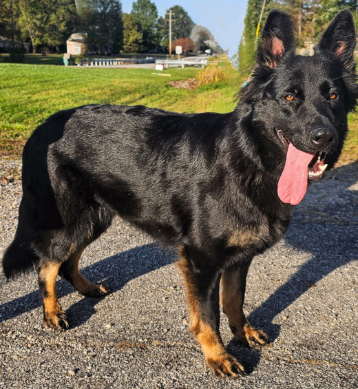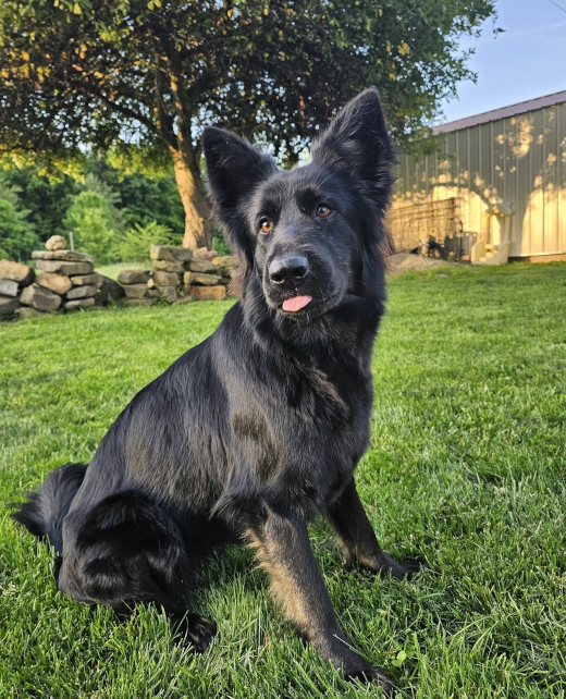 Otto has recently joined Stony Lonesome GSD and is fitting in quite nicely! Otto is a great mix of desirable German Shepherd traits. He is very confident, lots of energy, has an off switch, would love to snuggle on the couch with us (we don’t allow that), he is very obedient and is always trying to figure out what you want. He entered our home with our 4 girls with no problems what so ever, gets along great with other dogs. He LOVES to play ball. He knows more of the German language than we do, having been trained in obedience commands in German. He is a okay being alone but absolutely loves his people. Loves people and toys above all. He is a very handsome boy weighing approximately 85 pounds, well built and stocky. He is a great addition to our kennel and we are happy to welcome him to Stony Lonesome German Shepherds.