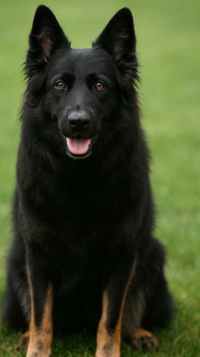 Lean but powerful, heavy coated, well-muscled, good bone. Intimidating bark. Desirable melanistic / blanket back.